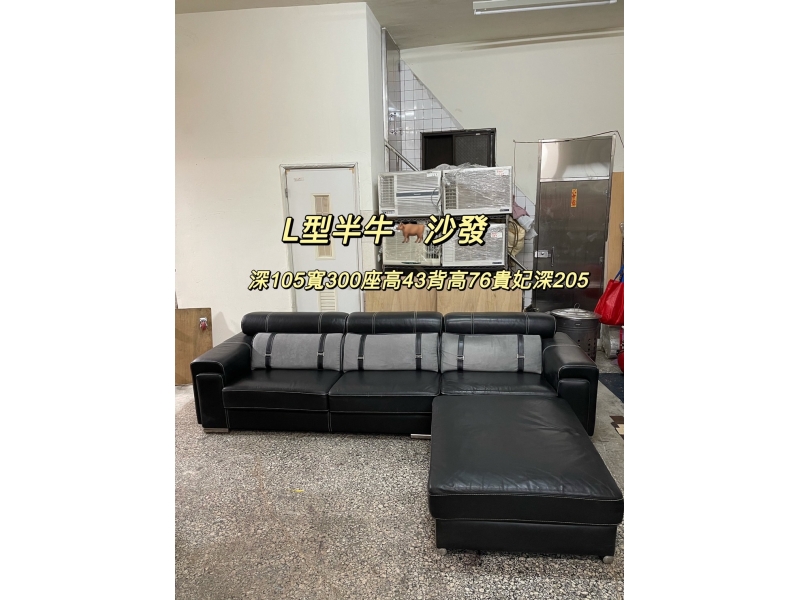 C-56(門市)L型半牛 沙發 深96寬30 -